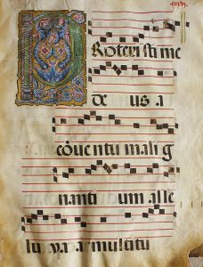 Extraodinario manuscrito musical litúrgico de gran tamaño.