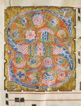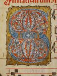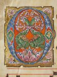 ►Preciosamente decorado con seis letras capitales de gran tamaño (aprox. 25 x 19 cm. ), policromadas y resaltadas con pan de oro e ilustradas con figuras de animales y flores.
