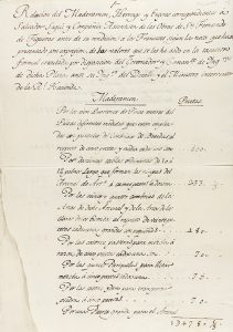 Relación del Maderamen, Herrage y Enseres correspondientes a Salvador Sagué y Compañía Asentista de las obras de San Fernando de Figueras antes de su rendición a los Franceses, según la nota que han presentado, con expresión de los valores que se les ha dado en la tasación formal executada por disposición del Governador y Comandante de Ingenieros …, 21 de mayo de 1797.