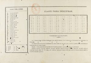 (ESCLAVITUD-CUBA) - 1886. - LISTADO CON LAS CLAVES PARA DESCIFRAR MENSAJES. Lleva fecha manuscrita del 1 de agosto de 1886. Es un impreso en un folio menor con las claves para cifrar y descifrar mensajes. Lleva sello de caucho en color rojo de...