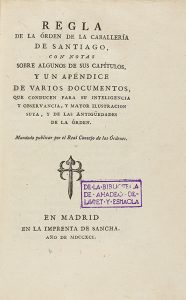 (CABALLERIA) - 1791 - REGLA DE LA ORDEN DE LA CABALLERIA DE SANTIAGO. CON NOTAS SOBRE ALGUNOS CAPÍTULOS, Y UN ÍNDICE DE VARIOS DOCUMENTOS, QUE CONDUCEN PARA SU INTELIGENCIA Y OBSERVANCIA, Y MAYOR ILUSTRACION SUYA, Y DE LAS ANTIGÜEDADES DE LA...