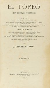 (TAUROMAQUIA) - 1879 - SANCHEZ DE NEIRA, K. : EL TOREO. GRAN DICCIONARIO TAUROMÁQUICO. Madrid : Imp. de Miguel Guijarro, 1879. 2 tomos en un vol. en 4º menor.