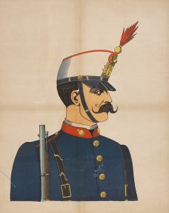 (UNIFORMES MILITARES). 1920 ca. ARTILLERO DE PLAZA (EJERCITO ESPAÑOL - Litografia en color, la figura se compone de 3 hojas de 81 x 65 cm. Barcelona : hijos de Paluzie, s. a. Rasgaduras en los dobleces, sin pérdida.