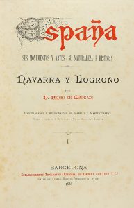 (ARTE-NAVARRA) - 1886 - MADRAZO, PEDRO DE : NAVARRA Y LOGROÑO. Barcelona : Est. Tip. Edit. Daniel Cortezo y Cª, 1886. 3 vols. en 4º menor. I : 576 p. ; II : 552 p. , III : 757 p. , 1 h.