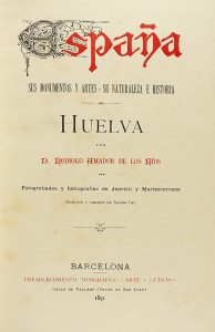 (ARTE-HUELVA) - 1891 - AMADOR DE LOS RIOS, RODRIGO : HUELVA. España, sus monumentos y arte, su naturaleza é historia. Barcelona : Est. Tip. Daniel Cortezo, 1891. 4º. 813 p.