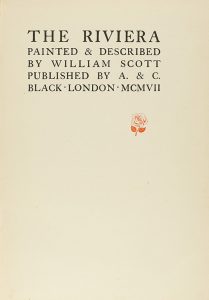 (MEDITERRANEO) - 1907 - SCOTT, WILLIAM : THE RIVIERA PAINTED & DESCRIBED BY. . . London : A. & C. Black, 1907. 8º mayor. XII + 234 p. , 1 h. Abund. láms. a color. Enc. en tela, decorada.
