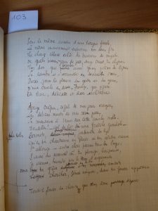 PARROT (Louis) 1906 - 1948, poète, journaliste, romancier français : Recueil mss. de 7 poèmes, respectivement de 4 pp., 3pp., 2pp., 1p., 3pp., 3 pp., 12 pp., soit 28 pages en tout, réunis en 1 vol. in - 4°, relié en chagrin noir, dos à nerfs,...