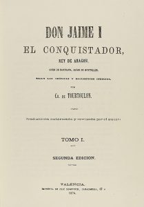 (FACSÍMIL-HISTORIA) - 1980 - TOURTOULON, CH. DE : DON JAIME I EL CONQUISTADOR REY DE ARAGON. Facsimil de la edición de Valencia : Imp. de Jose Domenech, 1874. 2 vols. en 8º mayor. I : XXX + 380 p. , 2 h. ; II : 528 p. , 2 h. Enc. en...