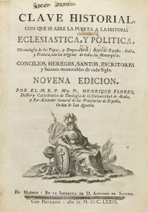 (HISTORIA) - 1776 - RELIGIOSA FLOREZ, HENRIQUEZ : CLAVE HISTORIAL CON QUE SE ABRE LA PUERTA A LA HISTORIA ECLESIASTICA, Y POLITICA. . . concilios, hereges, santos, escritores y sucesos memorables de cada siglo. Madrid : Imp. Antonio Sancha,...