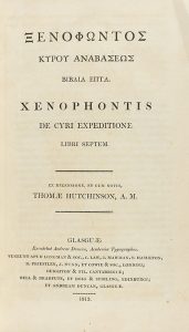 1813. (HISTORIA CLÁSICA) - 1813 - XENOPHONTIS : DE CYRI EXPEDITIONE. LIBRI SEPTEM. Glasguae : Andreas Duncan, 1813. 8º mayor. 2 h. + un mapa plegado + XX + 540 p.