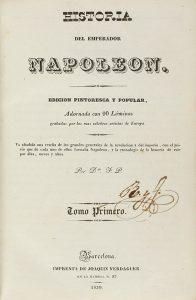 (HISTORIA NAPOLEÓN) - 1839 - HISTORIA DEL EMPERADOR NAPOLEON. EDICIÓN PINTORESCA Y POPULAR. Barcelona : Imp. Joaquin Verdaguer, 1839. 2 tomo en 8º. 3 h. + 112 p. + 2 h. + 98 p. + 2 h.