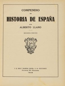 •LLANO, ALBERTO : COMPENDIO DE HISTORIA DE ESPAÑA. Barcelona : Ed. Seix Barral, 1934. 114 p. , 3 h. Ilustr.