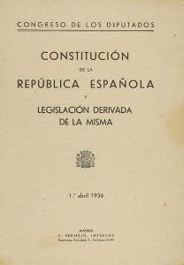 (HISTORIA ESPAÑA-GUERRA CIVIL) - 1936 -CONSTITUCION DE LA REPUBLICA ESPAÑOLA Y LEGISLACION DERIVADA DE LA MISMA. Madrid : Ed. Congreso de los Diputados, 1º abril 1936. 8º. 240 p.