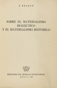 (POLITICA) - 1939 - STALIN, I. : SOBRE EL MATERIALISMO DIALECTICO Y EL MATERIALISMO HISTORICO. Moscu : Eds. en Lenguas Extranjeras, 1939. 8º. 47 p. Rústica.