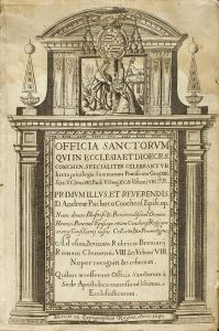 (RELIGION) - 1649 - PACHECO, ANDREAE : OFFICIA SANCTORUM QUI IN ECCLESIA ET DIOECES CONCHEN, SPECIALITER CELEBRANTUR. . . Matriti : Typ. Regia, 1649. 8º mayor. Frontis con grabado arquitectónico `por Iuan de Noort + 8 h. + 143 p. texto...