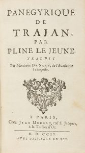 (HUMANIDADES) - 1709 - PLINIO EL JOVEN : PANEGYRIQUE DE TRAJAN PARA PLINI LE JEUNE. Trad. M. de Sacy. Paris : chez Jean Moreau, 1709. 8º menor. XXXI + 3 h. + 275 p. , 12 h.