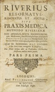 (MEDICINA) - 1712 - CALMETTE, FRANCISCO : RIVERIUS REFORMATUS RENOVATUS ET AUCTUS SIVE PRAXIS MEDICA, METHODO RIVERIANAE NO ABSIMILIS, JUXTA RECENTIORUM, TUM MEDICORUM, TUM PHILOSOPOHORUM PRINCIPIA. . . Lugduni [Lyon] : Philibertum Chabanne, 1712....
