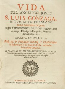 (RELIGION) - 1751 - CEPARI, VIRGILIO : VIDA DEL ANGELICO JOVEN S. LUIS GONZAGA, ESTUDIANTE THEOLOGO DE LA COMPAÑIA DE JESUS. Valencia : Joseph Estev. Dolz, 1751. 8º mayor.