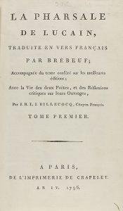 (HISTORIA HUMANIDADES) 1796 - [LUCANO] : LA PHARSALE DE LUCAIN, TRADUITE EN VERS FRANÇAIS. París : Imp. Crapelet, 1796. 2 vol. 8º mayor. I : 2 h. L + 376 p. y 5 grabados II : 2 h. + 409 p. y 5 grabados. Dos vol. enc. en plena...