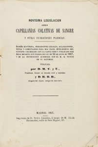 (LEGISLACION-CARIDAD) - 1867 - NOVISIMA LEGISLACION SOBRE CAPELLANIAS COLATIVAS DE SANGRE Y OTRAS FUNDACIONES PIADOSAS. Madrid : Imp. Pedro Laserna, 1867. 8º mayor. 98 p. , 1 h. Rústica.