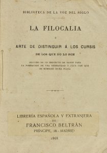 (HUMANIDADES) - 1868 - SILVELA, F. : LA FILOCALIA O ARTE DE DISTINGUIR A LOS CURSIS DE LO QUE NO SON. Madrid : Libr. Española y Extranjera, 1868. 8º menor. 61 p. Sin cubiertas.