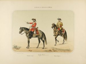 (MILITAR) - 1880 ca - VILLEGAS : LOTE DE 9 LITOGRAFIAS DE MILITARES DE DIFERENTES EPOCAS. 2 de 21 x 29 cm, el resto 30 x 41. 5 de ellas firmadas en plancha como Villegas.