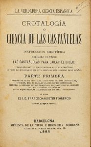 (MÚSICA) - 1882 - FLORENCIO, FRANCISCO AGUSTIIN : CROTALOGIA O CIENCIA DE LAS CASTAÑUELAS. Barcelona : Imp. de la Viuda e Hijos de J. Subirana, 1882. 8º. 189 p. , 1 h. Enc. en pasta española, doble tejuelo.