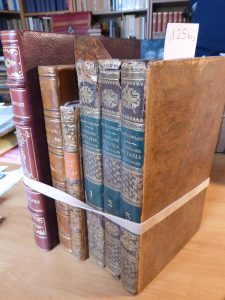 STAEL- HOLSTEIN (Baronne de) : Oeuvres. P., Lefervre, 1838 ; demi- basane blonde ornée de l'ép. SAND (Georges) : Histoire de ma vie. Paris, Lecou, 1854 -1855. 20 tomes en 10 vol. in - 8°, demi-basane rose ornée. THIERS : Hist. du Consulat et de...