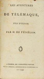 (LITERATURA) - 1799 - FENELON, M. : LES AVENTURES DE TELEMAQUE, FILS D´ULYSSE. Madrid : Imp. Royale, 1799. 8º menor. XL + 459 p. Ilustr. con 11 lám. y un mapa plegado, fuera del texto.