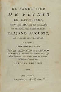 (LITERATURA) - 1800 - CLÁSICA EL PANEGÍRICO DE PLINIO EN CASTELLANO, PRONUNCIADO EN EL SENADO EN ALABANZA DEL MEJOR PRÍNCIPE TRAJANO AUGUSTO, SU FILOSOFÍA POLÍTICA MORAL Y ECONÓMICA. Trad. por Francisco Barreda. Madrid : s. Imp. , 1800. ...