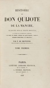 (CERVANTINA) - 1837 - CERVANTES SAAVEDRA, MIGUEL DE : HISTOIRE DE DON QUIJOTE DE LA MANCHE, traduite sur le texte original. . . par F. De Brotonne. París : Libr. Edit. Lefèvre, 1837. 2 vols. en 8º mayor.