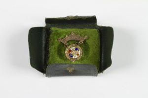 Insigne franc-maçon avec le compas-équerre et l’inscription « E. Hall 191 ». Début du XXe siècle.