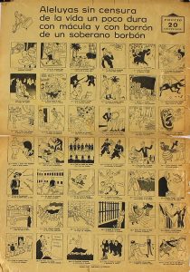 (AUCAS) - 1929 Y 1925 CA. ALELUYAS SIN CENSURA DE LA VIDA UN POCO DURA CON MAYUSCULA Y CON BORRON DE UN SOBERANO BORBON. [MÁS : ] AUCA DE LA EXPOSICION. Olot : Edit. de Corral & Sanahuja-Industr. Graf. Guinart, s. a. 65x45 cm. Los dos con...