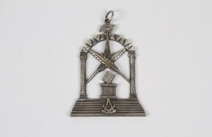 Bijou maçonnique, vraisemblablement de Secrétaire. Bronze argenté. XIXe siècle. 10 x 7,5 cm