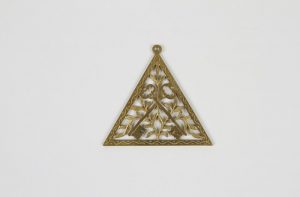 Bijou de Trésorier, triangle ajouré contenant deux clés croisées et des rameaux d’acacia. Début du XIXe siècle. 4,7 cm