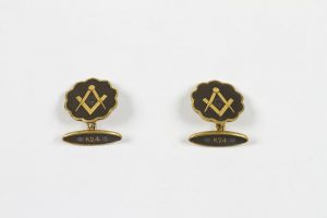 Paire de boutons de manchettes, décor niellé du compas-équerre. Vers 1950.