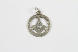 Pendentif maçonnique circulaire en argent, décor ajouré du compas-équerre. Début du XXe siècle. 2,3 cm Poids : 2 g