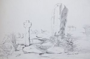 FINISTÈRE. Juillet 1868. Carnet de dessins, 25 x 20 cm. Reliure en toile. 28 dessins ou esquisses à la mine de plomb exécutés par Henri de Carnazet en juillet 1868 lors d'un voyage en Bretagne, dans la région de Kernazet (près de Quimper), dont...