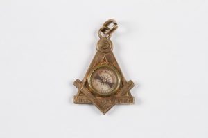 Curieux bijou pendentif maçonnique composé du compas, équerre, et règle avec au centre une boussole. XIXe siècle. 3,5 cm