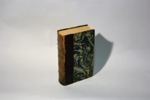 Dos uniformément éclairci, quelques frottements (épidermures), sur les mors et les nerfs, légères rousseurs seulement sur les 100 premières pages, mouillure claires uniquement dans la marge inférieure du volume.
