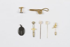 Lot divers composé de quatre épingles à cravate et divers (7).