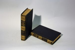 Dos à 4 nerfs très ornés et dorés portant les titres dorés, plats habillés de percaline nuit cloisonnés à froid, tranches dorées.