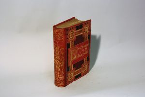 Dos lisse entièrement recouvert d'un décor doré et portant le titre doré, plats entièrement occupés par un décor en rouge, noir et or, tranches dorées (reliure Engel).
