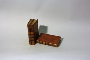 Dos à 5 nerfs cloisonnés et fleuronnés portant les pièces de titre en maroquin vieux rouge et de tomaison en maroquin marron ; roulette dorée sur les coupes, tranches jaspées. Petite usure à deux coiffes et a deux coins, trace de mouillure marginale dans le bas du tome II, mouillure sombre marginale sur quelques feuillets et quelques planches du tome trois. Un tableau dépliant ; 15 grandes planches, en général dépliantes, réparties dans les volumes (quelques fentes aux pliures ou réparations aux dos).