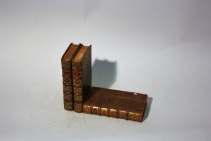 Frottements sur les coins, petites épidermures ou attaques de vers sur les reliures, quelques feuillets brunis dans le tome II.