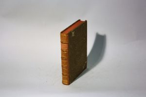 Dos à 5 nerfs décoré de filets et roulettes dorés portant une pièce de titre en veau rouge, tranches rouges.