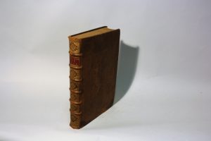 Dos à 6 nerfs très orné et doré portant une pièce de titre en maroquin rouge, roulette dorée sur les coupes, tranches jaspées.