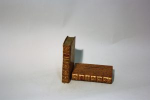 Dos à nerfs cloisonnés et fleuronnés portant les pièces de titre en maroquin rouge, filet doré sur les coupes, tranches jaspées. Petites usures aux coiffes, à quelques coins, salissures claires sur les plats, cerne de mouillure claire marginale sur quelques feuillets du tome II.