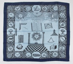 Foulard d’instruction représentant les symboles de la franc-maçonnerie. 93 x 93 cm