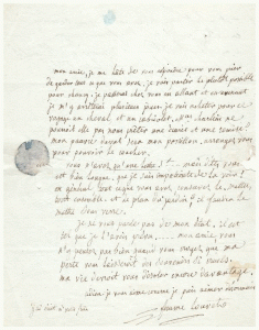 Au verso, apostille autographe du fils de Louvet, Félix, à propos de cette lettre, finissant pas s’exclamer : (…)